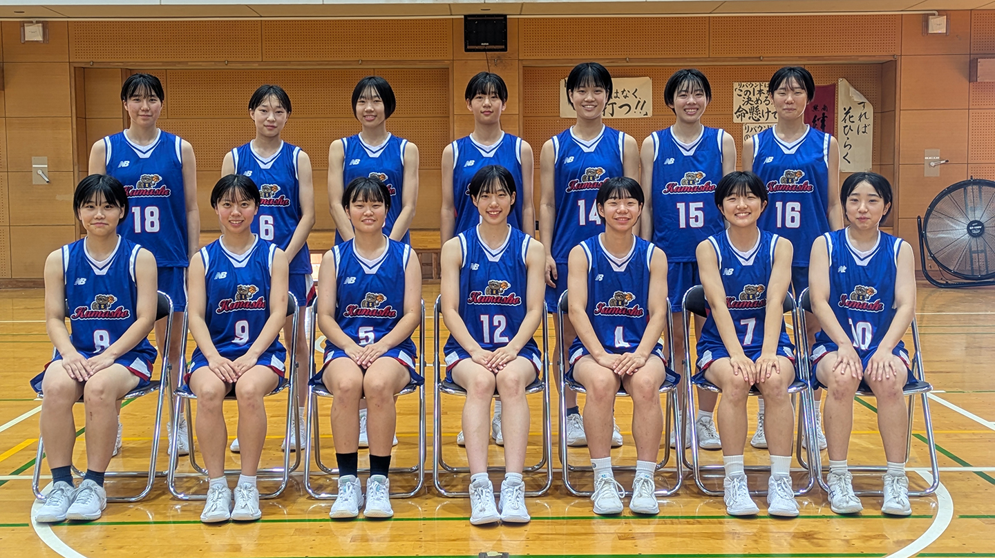 今年度創立130年を迎える熊本商業高校の女子バスケットボール部です。チーム全員が熊本県出身。身体は小さいですが、気合いと運動量で頑張ります!!