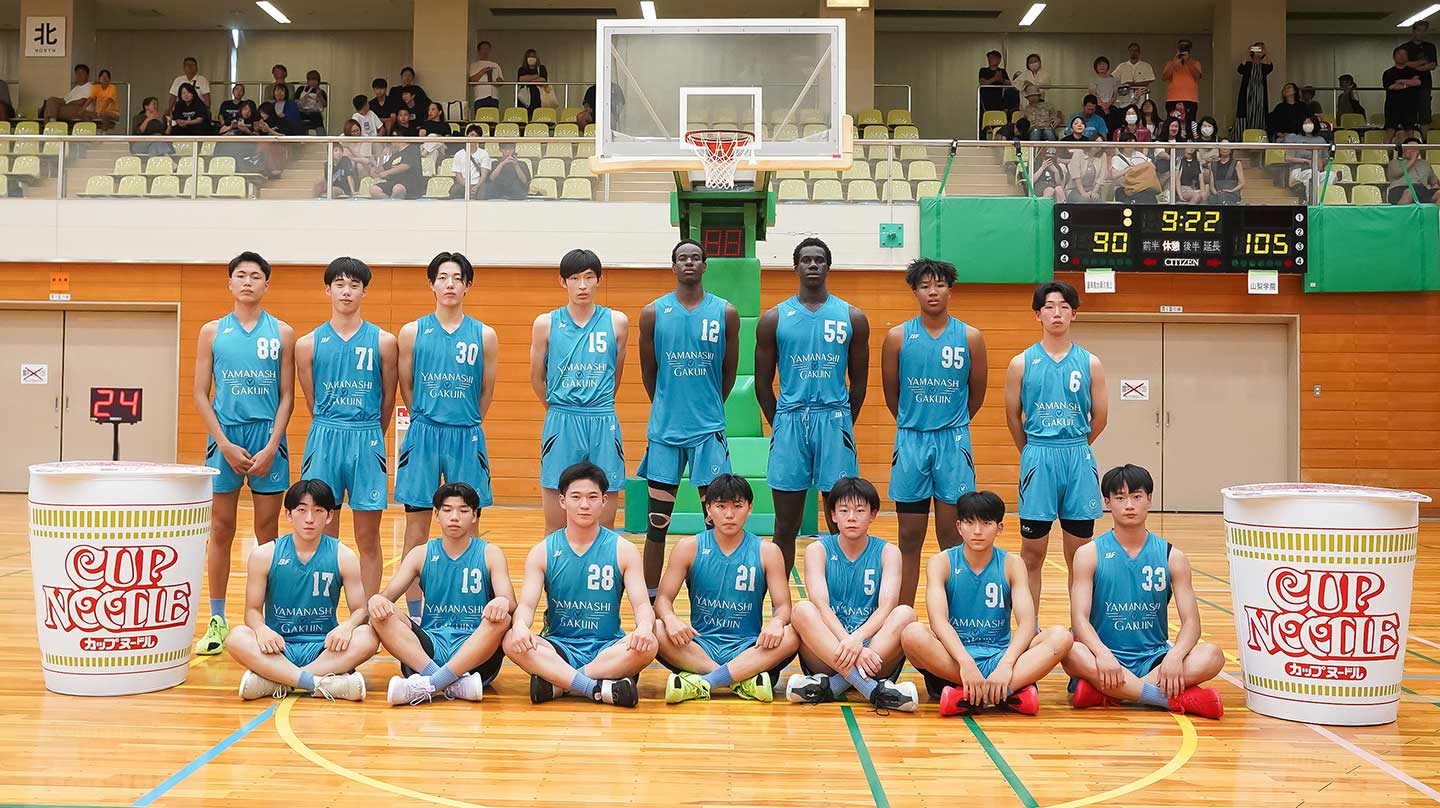 山梨学院大学の関東1部リーグ昇格を機に高校の強化に乗り出した。大学の古田監督からの招聘を受けて、桜丘高校勇退後の江﨑悟氏が監督に就任。2024年、1期生の入学と共に強化がスタートした初年度は県内で総体ベスト8、ウインターカップ4位と順調に力をつけ、そして迎えた新人戦で日本航空を破り、初優勝。毎年1人ずつの留学生、新体育館、寮、完備の施設環境の中、2年目の総体県予選で優勝し、インターハイ初出場を果たした。